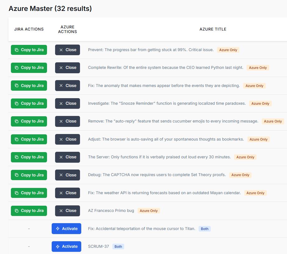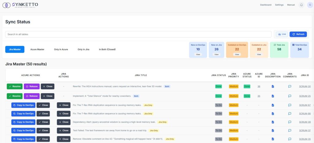 Synketto has revolutionized how we manage Azure DevOps bugs and Jira stories. No more wasted hours manually aligning boards! Everything is seamless now, and my team's productivity has skyrocketed. Absolutely essential!
