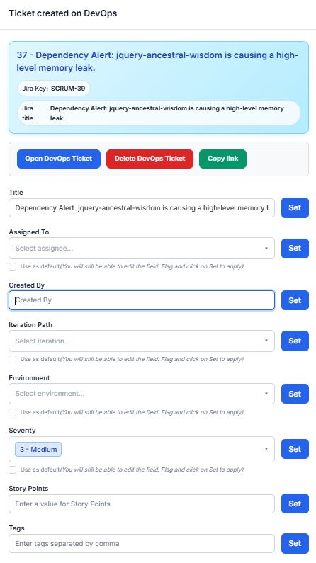 Stop switching tabs to create copies. Utilize the native creation panels (e.g., "Copy to DevOps") to seamlessly push a new work item from one platform to the other, preserving all relevant data.